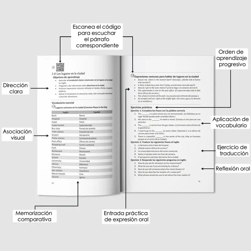 Porque este libro está diseñado específicamente para hispanohablantes. Las explicaciones están en español, eliminas la confusión de traducir constantemente, y aprendes frases reales que usarás desde el día uno. No es otro método genérico—está hecho para cómo TU cerebro procesa el idioma.